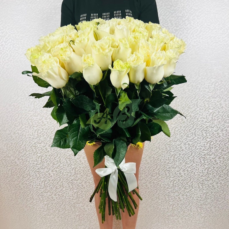Букет из белых роз "Мондиаль" - 70 см