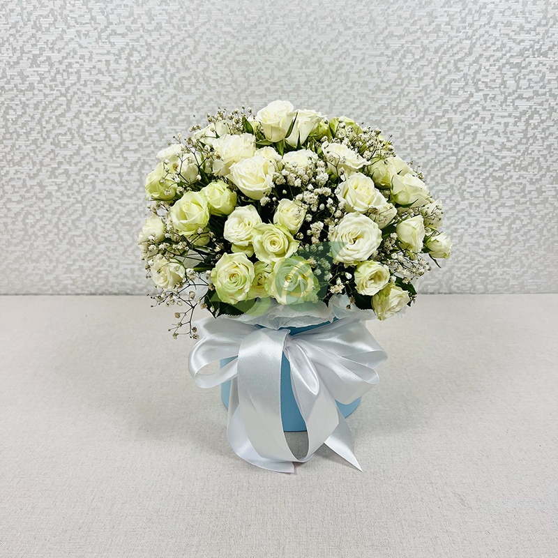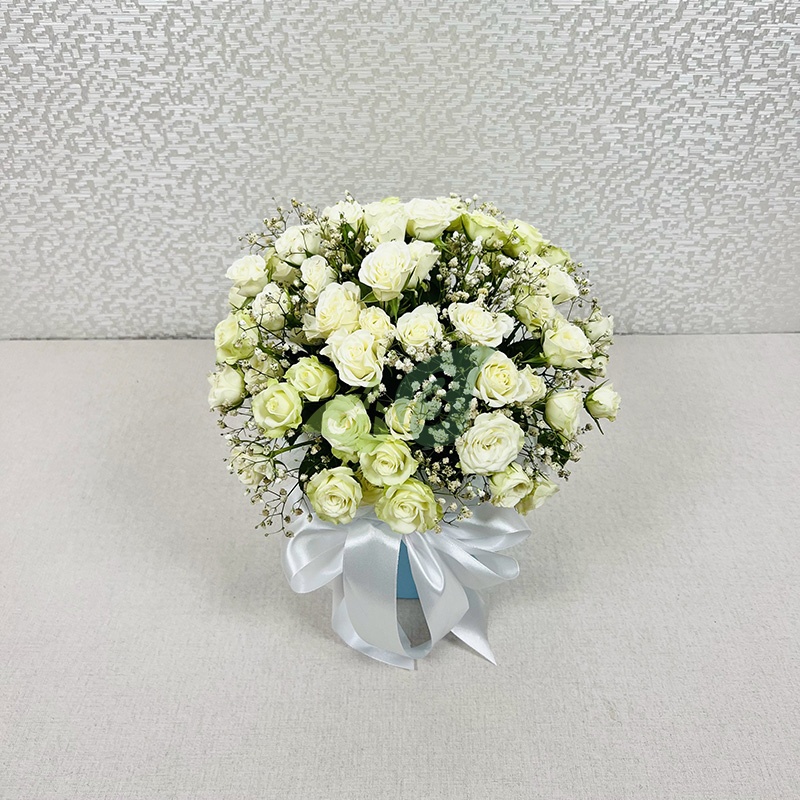 Состав и характеристики коробки "19 кустовых белых роз":
