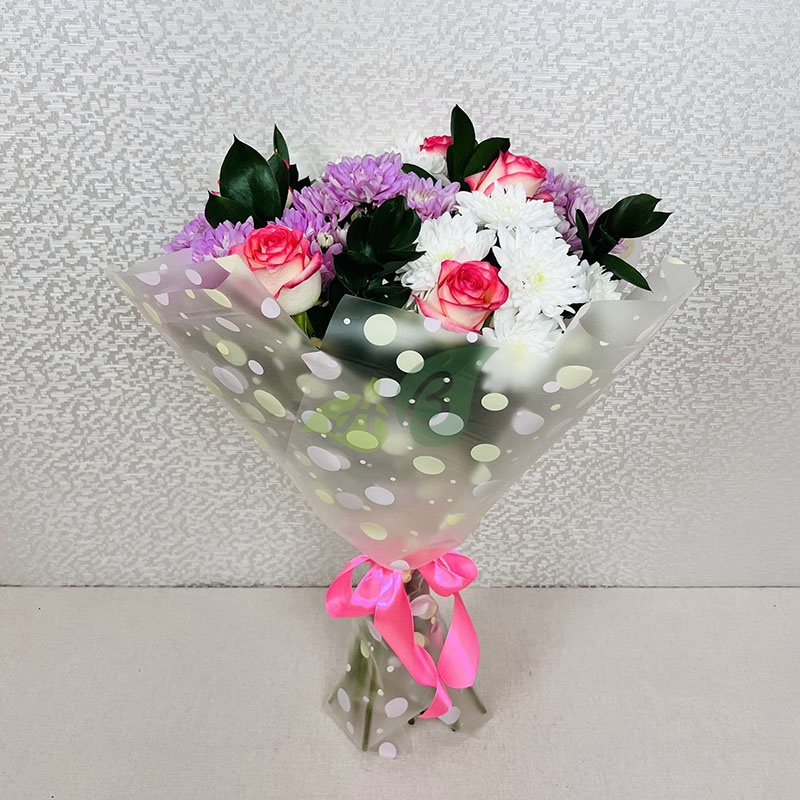 Состав и характеристики букета из роз и хризантем "Летние воспоминания":